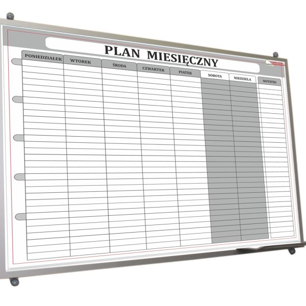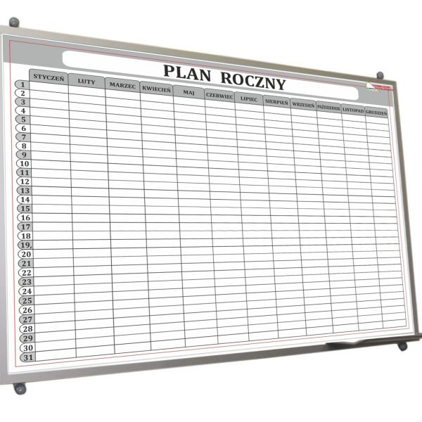 Tablica suchościeralna-magnetyczna planer roczny 120×100 cm rama ALU