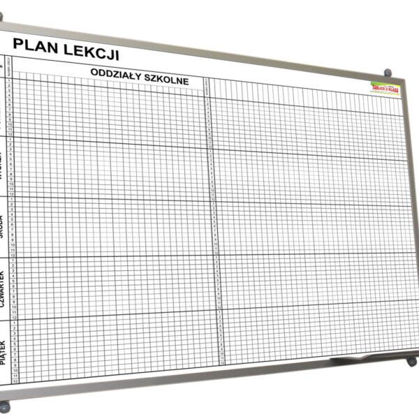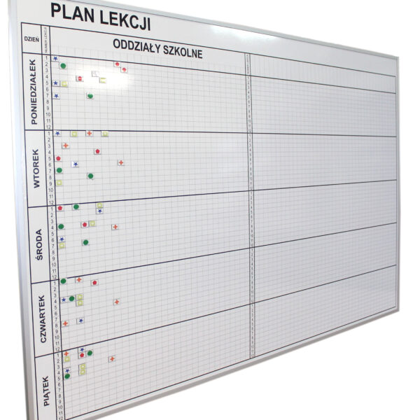 Tablica magnetyczna z grafiką w ramie aluminiowej 200x100cm Plan Lekcji + znaczniki dla nauczycieli