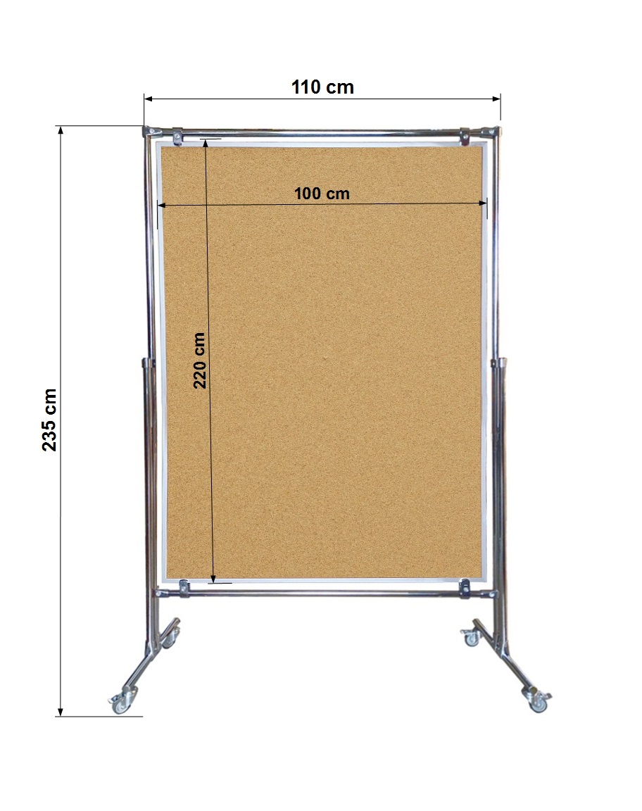 • 1 szt. tablicy korkowej dwustronnej w stelażu (na stojaku) o wymiarach 220 x 100 x 190 cm