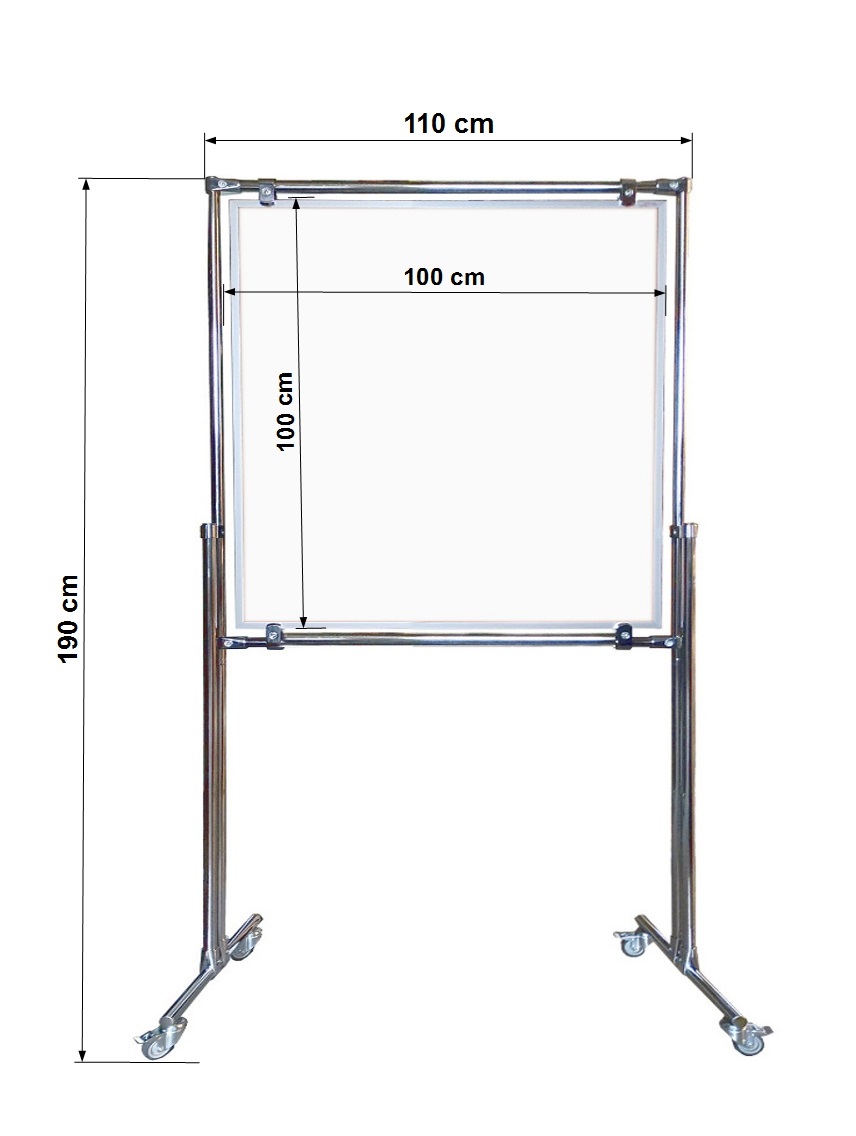 • 1 szt. tablicy magnetyczno-suchościeralnej dwustronnej w stelażu (na stojaku) o wymiarach 100 x 100 x 190 cm