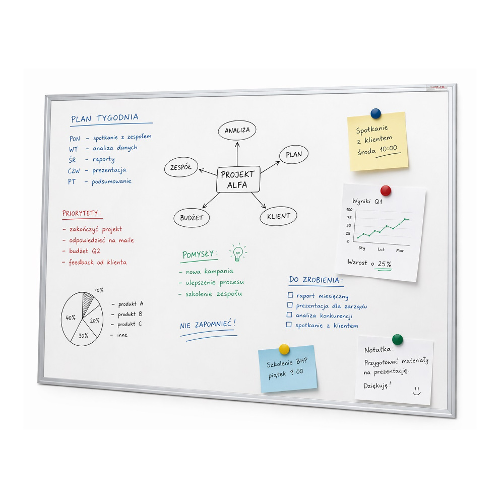 ProduktTablica magnetyczno-suchościeralna w ramie aluminiowej